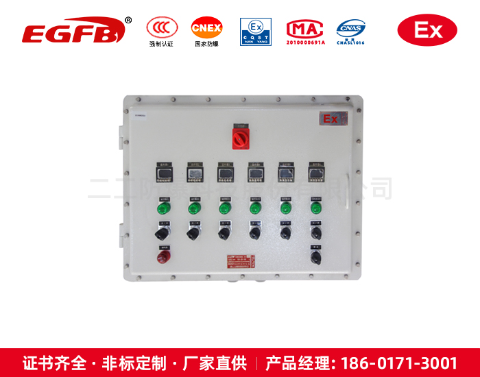 防爆標志: ExdellBT4/T5/T6、ExdellCT4/T5/T6、DIP A20 TAT4/T5/T6;額定電壓: AC220/380V,非標準電壓: 12V/24V/36V/127V/660V:總開關(guān)電流: 10A-800A: 分開關(guān)電流: 1A-630A;防護等級: IP54/IP55/IP65:
